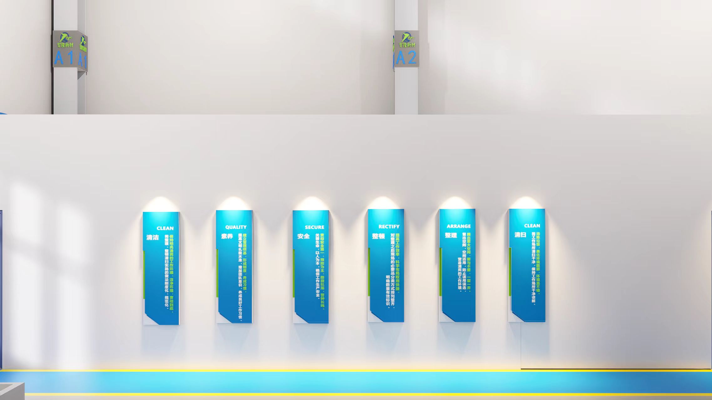 “空间视觉设计”是由精益专家、平面设计师、三维建模师整体配合,从“客户主导式”转变为“引导客户式”设计服务,在安全管理、现场管理、参观展示等多角度,打造『视觉化、公开化、透明化』的工厂的服务。